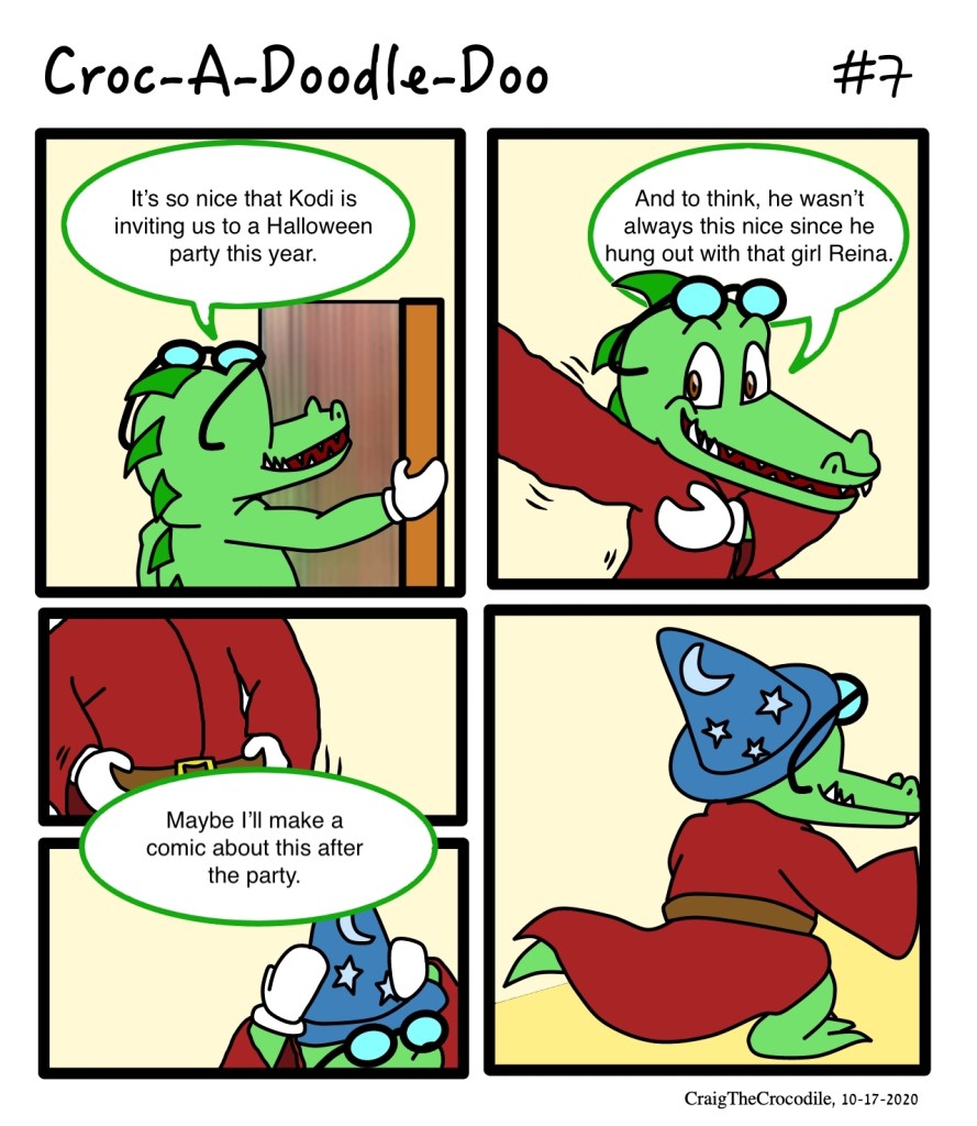 Croc-A-Doodle-Doo #7 Posted bycraigthecrocodileOctober 17, 2020October 16, 2020Posted inCroc-A-Doodle-DooTags:Craig the Crocodile, Croc-A-Doodle-Doo “Dressing Up” Share this: Share on X (Opens in new window) X Share on Facebook (Opens in new window) Facebook Like Loading... Related