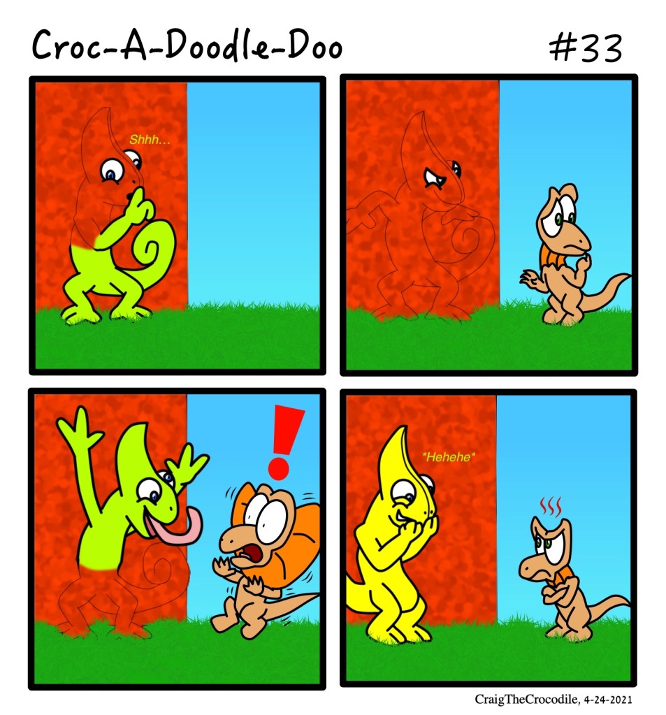 Croc-A-Doodle-Doo #33 Posted bycraigthecrocodileApril 24, 2021April 23, 2021Posted inCroc-A-Doodle-DooTags:Chrome the Chameleon, Croc-A-Doodle-Doo, Frederick the Frilled Lizard “A Harmless Prank” Share this: Share on X (Opens in new window) X Share on Facebook (Opens in new window) Facebook Like Loading... Related