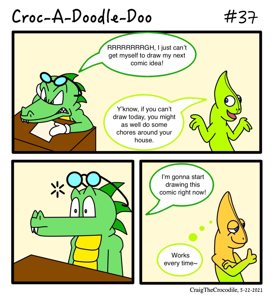 Croc-A-Doodle-Doo #37 Posted bycraigthecrocodileMay 22, 2021May 21, 2021Posted inCroc-A-Doodle-DooTags:Chrome the Chameleon, Craig the Crocodile, Croc-A-Doodle-Doo “The Proper Motivation” Share this: Share on X (Opens in new window) X Share on Facebook (Opens in new window) Facebook Like Loading... Related