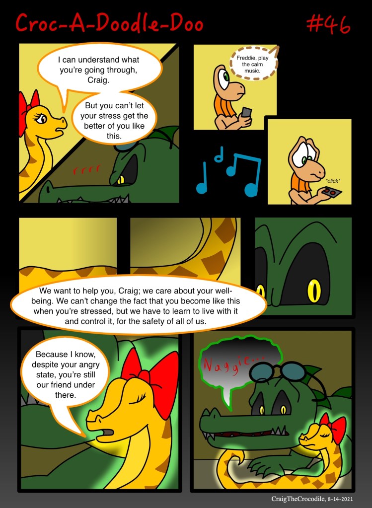 Croc-A-Doodle-Doo #46 Posted bycraigthecrocodileAugust 14, 2021August 13, 2021Posted inCroc-A-Doodle-DooTags:Craig the Crocodile, Croc-A-Doodle-Doo, Frederick the Frilled Lizard, Naggie the Python “Going Wild, Part 6” Share this: Share on X (Opens in new window) X Share on Facebook (Opens in new window) Facebook Like Loading... Related