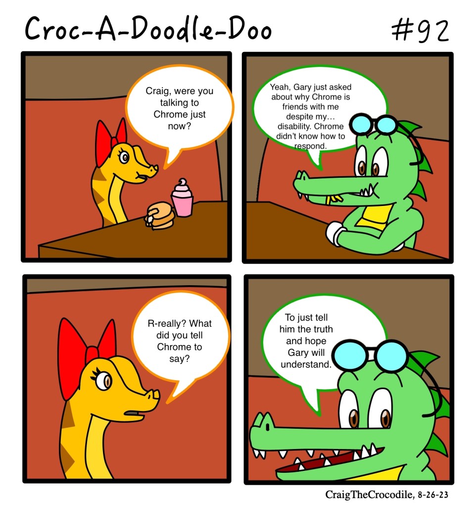 Croc-A-Doodle-Doo #92 Posted bycraigthecrocodileAugust 26, 2023August 26, 2023Posted inCroc-A-Doodle-DooTags:Craig the Crocodile, Croc-A-Doodle-Doo, Naggie the Python The Double Date, Part 4 Share this: Share on X (Opens in new window) X Share on Facebook (Opens in new window) Facebook Like Loading... Related