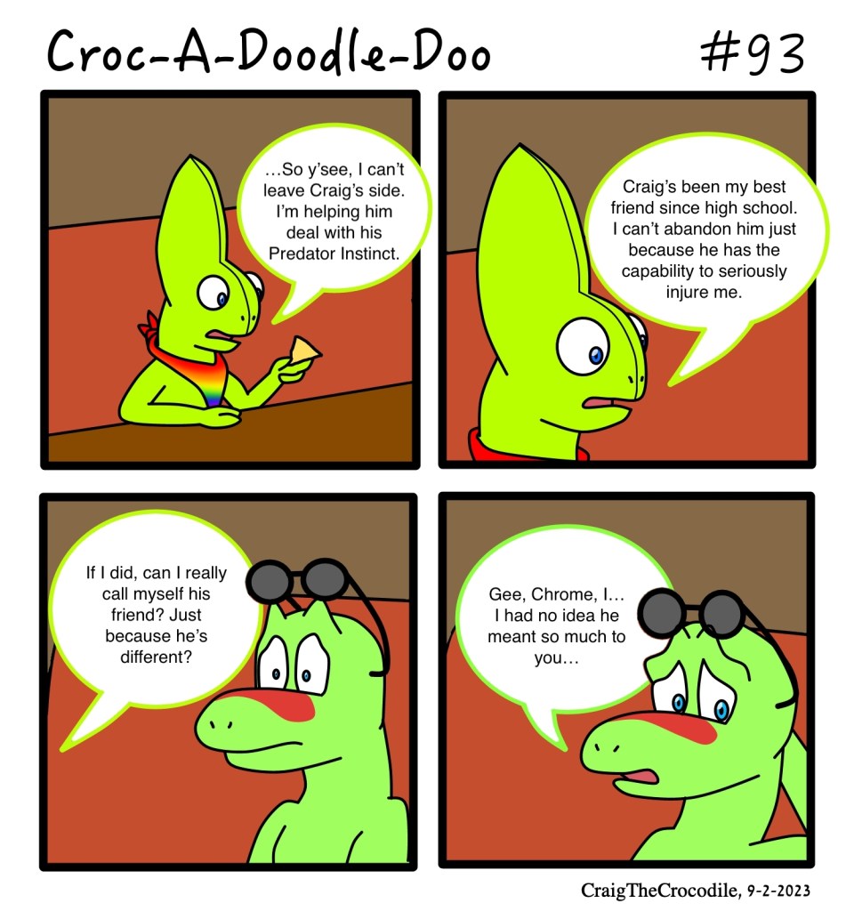 Croc-A-Doodle-Doo #93 Posted bycraigthecrocodileSeptember 2, 2023September 2, 2023Posted inCroc-A-Doodle-DooTags:Chrome the Chameleon, Croc-A-Doodle-Doo, Gary the Gecko “The Double Date, Part 5” Share this: Share on X (Opens in new window) X Share on Facebook (Opens in new window) Facebook Like Loading... Related